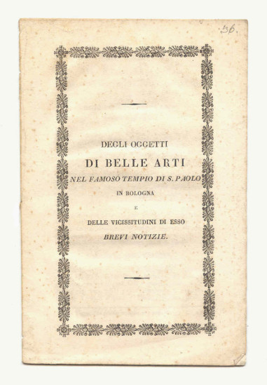 DEGLI OGGETTI DI BELLE ARTI NEL FAMOSO TEMPIO DI S. PAOLO IN BOLOGNA E DELLE VICISSITUDINI DI ESSO.