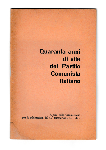Brossura (cm 20x13) pag. 44 -- A cura della Commissione per la celebrazione del 40° anniversario del P.C.I.