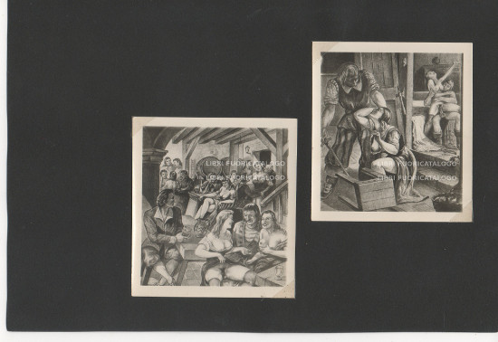 Cartelletta con 2 foto di vignette erotiche anni 40. Le foto misurano mm 88x80 (originali non censurati).