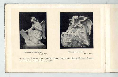 Album (cm 24,5x17) pag.68 con numerose foto in b/n. Tracce d'uso. -- Facciate di chiese, edicole funerarie, sculture, pulpiti. Catalogo della ditta Paleari.