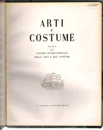 ARTI E COSTUME RIVISTA DEL CENTRO INTERNAZIONALE DELLE ARTI E DEL COSTUME.