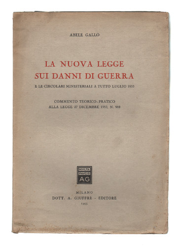 In 8vo (cm 25x18) brossura pag. XI-218. -- Commento teorico pratico alla legge 27 dicembre 1953 n° 968.