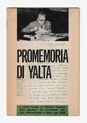 Brossura (cm 22x15,5) pag. 158 lievi tracce di polvere sulla copertina. -- Indice: La via italiana verso il socialismo. Le nuove prospettive aperte ai popoli dall'affermarsi di un sistema mondiale socialista. Nove domande sullo stalinismo. La lotta per la via italiana verso il socialismo. Il superamento del culto della personalità e delle sue conseguenze. Dichiarazione di Togliatti sulla risoluzione del C. C. del P.C.U.S.